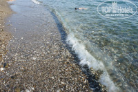 Единственное, что у нашего семейства вызвало определенные нарекания (не критические) это чистота моря и дискомфортная, из за разнокалиберной гальки, зона входа/выхода в море (см. фото). Как сказала моя супруга: -"Красиво из моря не выйдешь!"