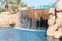 Очень зеленая, вся в цветах. Разные виды пальм и кустов. Просто сказка. Интересная архитектура. Бассейн с водопадами и гротом, бар в бассейне. Над гротто баром, если пройти через кактусовую полянку есть прогулочная площадка, где стоят разные египетские статуи и муляжи саркофагов с мумиями. Хорошее место для фотосессии. Есть одна горка. Но она больше для детей, маленькая и пологая. Драйва нет.