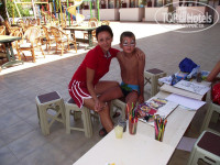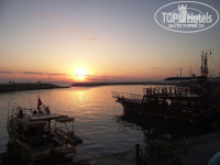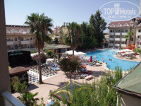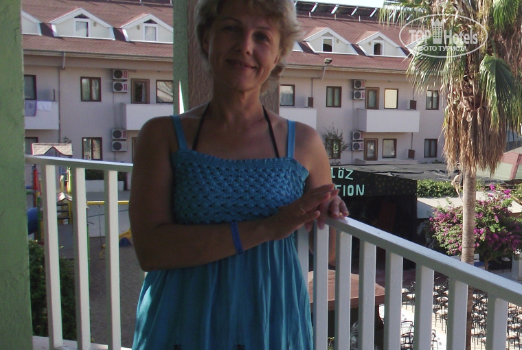 Из номера открывался замечательный вид во двор отеля на цветущие деревья и пальмы, бассейн, детскую площадку и сцену для анимации, так что все вечерние представления мы могли наблюдать прямо с балкона, удобно устроившись за столиком. Вся территория была как на ладони, мы всегда могли видеть, где находятся наши дети. Конечно и музыку было хорошо слышно, и призыв к молитве из Мечети, но нам это ничуть не мешало, а наоборот создавало особое настроение. В первую неделю нашего отдыха контингент туристов на 80% состоял из немцев, также были поляки, русских было мало. В нашем корпусе, кроме нас жили аниматоры, где была русская девушка Аня, а в остальных номерах только немцы. Когда немцы стали уезжать, появилось много турецких семей с детьми. Турчанки были в основном не европеизированные, а по старой традиции одетые в платки и длинные одежды, они появлялись только в ресторане, а некоторые ещё вечером выходили смотреть анимацию. Для них в отеле есть отдельный бассейн на крыше, куда посторонним ходить запрещается, там перед входом висит плакат и стоят видеокамеры. Наши любопытные дети всё-таки туда прорвались и рассказали потом, что они там видели). Также турки ходили купаться на море, в основном мужчины, женщин было немного и купались они бедные прямо в своих длинных одеждах. Администратор отеля Мурат (или информатор, как он сам представлялся), узбекский турок, уже более 20-ти лет живущий в Турции, сказал нам, что этот отель только первый сезон работает на международном направлении, до этого он был чисто мусульманским, и отдыхали там в основном турки.