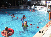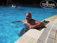 Мы ходили на море утром и вечером, а детей удавалось вытащить только один раз в день, они предпочитали бассейн. Бассейн и вправду хороший, достаточно просторный для небольшого отеля, с участками разной глубины, начиная от лягушатника в полметра и заканчивая глубоким отделением для взрослых (более 2 м). Детей в отеле много, им весело резвиться всем вместе в бассейне, играть и стрелять из водяных пистолетов. Есть водная горка, с которой катались как дети, так и взрослые. Лежаков у бассейна также хватает, всегда были свободные места. Придя с моря, мы всегда ещё купались в бассейне, т.к. там вода прохладней и освежает лучше. Купаться в бассейне разрешено до 19:00, по свистку все выходят из воды и начинается его ежедневная очистка.