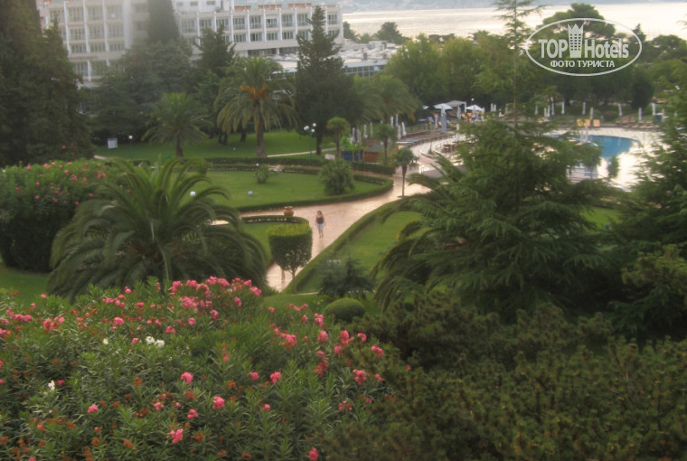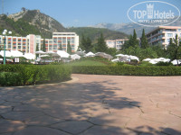 4-ТЕРРИТОРИЯ большая,много зелени,бассейны разной глубины,несколько баров.Правда море перед отелем очень грязное и мутное,на мой взгляд,да и песочек крупноват.Мелкий песок находится справа,через ленточку от Иберостаровского пляжа,рядом со скалами.А чистое море можно найти недалеко-пройдя,через тоннель ведущей к Будве.