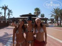 отдыхали втроем-с 13сентября по 27,в целом впечатления положительные.Територрия отеля-великолепная,много зелени,все ухожено.Пляж как пляж-лежаков всегда хватало не смотря на то что народу было много.Приехали поздно ночью-проблем с расселением не было,нас как всех русских туристов поселили в номер с видом на стройку,но правда нам повезло больше,у нас был угловой номер,так что вид на море нам тоже достался.Питание в отеле среднее,не сказать что плохо но разнообразия никакого,соки отсутствовали вообще(был свежевыжатый апельсиновый, но за отдельную плату),а так из безалкогольных напитков ЮППИ, КОЛА,ФАНТА,СПРАЙТ и ВОДА.Скучать нам не пришлось-АНИМАТОРЫ КЛАССНЫЕ( особенно САДИК и диджей БЕРК).Дискотека 3раза в неделю-музыка специфическая(в соднем отеле ЛЕОДИКИЯ гораздо лучше). ИННА ИЗ ОМСКА , если ты будешь читать этот отзыв напиши нам обязательно- это ЖЕНЯ И КАТЯ ИЗ ЧЕЛЯБИНСКА( arndt84@mail.ru)