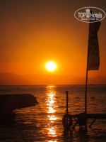 До моря минут 5-7 быстрым шагом. Пляж небольшой для имеющегося количества отдыхающих. Мы загорали там очень мало, поэтому нехватка лежаков на нас сильно не отразилась. Когда приходили, лежаки всегда находились, пусть и не в самой близости от воды. Свои полотенца всегда можно положить на песок, место есть, поэтому заморачиваться по этому поводу не стоит. Море грязное, мелкое, в воде много неприятных на на ощупь камней. Ну об этом тут писали очень много, поэтому углубляться не буду. Купаться в таком море никакого удовольствия, реально оторваться можно только на морских прогулках. Или в бассейне.