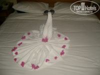 В отель нас привезли в 10 утра, ну я почитав про международные правила заселения приготовилась после заполнения карточек спать на диванах до 14.00. В паспорт положила 20 баксов, клали ли девчонки не помню. К нам подошел толстый улыбчивый араб вернул деньги, что кстати в других странах я ни разу не наблюдала заметьте) и любезно предложил посмотреть два номера. Сначала повел в ооооочень страшный номер про которые наверно пишут люди которые в таких жили , там наверное было 2x2 метра, было не убрано и покрывала валялись на полу мы ужаснулись))) потом сказал пойдемте посмотрим еще один........привел в номер на 3 этаже балкон которого выходит прямо на бассейн в самом центре)))) земля и небо господа.... номер был большой, с 2мя двухспальными кроватями мы естественно согласились на этот, но сразу ждали сумму которую он озвучит, а тут еще один сюрпрайз сказал что бесплатно)))) вообщем за размещение поставила самый высокий бал. -4\. пять поставить рука не поднимется так как номерной фонд староват, хоть и работало все исправно.