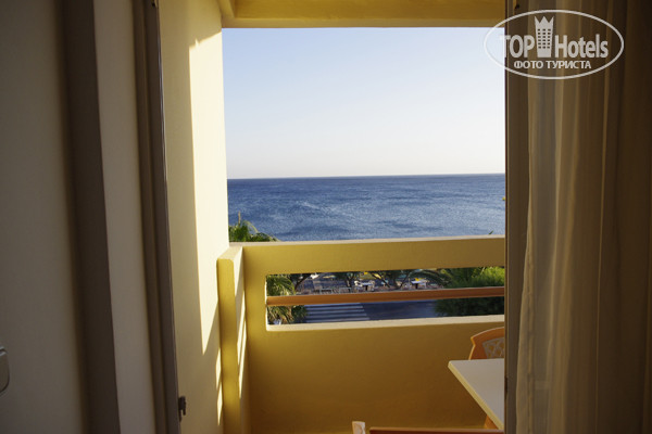 Номера, на мой взгляд, маловаты, но уютны, тем более мы в номере спали и переодевались + гигиена – Для этого не нужна площадь спортзала. Дизайн приятен. Шторы оооочень плотные можно и днем устроить ночь в номере – типа тихий час, ну или активный час, кому что)). Нам достался вид на море, за что ОГРОМНОЕ спасибо персоналу. Территория отеля не большая, а территория Крита… Если есть территория Крита и пляж через дорогу зачем территория отеля?