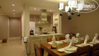 Регистрация прошла очень быстро, через пять минут посадили в багги и отвезли на виллу. Встречали с шампанским и цветами, что было очень приятно. Менеджер по работе с клиентами Наталья показала виллу, дала исчерпывающую информацию по отелю, принесла список мероприятий на неделю, сразу зарезервировала для нас столики в ресторанах а ля карт, которые мы попросили. Вила понравилась очень! Фотографии на сайте не дают полного впечатления, все комнаты оказались горазда уютнее и просторнее. На первом этаже размещается двухуровневая гостиная и кухня, отделенная стойкой. Красиво сервирован стол, много различных элементов декора, что делает обстановку очень уютной. Огромный телевизор, 5 русских каналов, есть CD плеер, и CD есть также в электронных часах на столе. Свежие цветы в вазе периодически меняли. Каждое утро приносили свежие фрукты, каждый вечер блюдо с мини-пирожными.