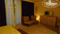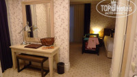 На втором этаже родительская спальня с балконом, просторная ванная с джакузи, перед детской спальней с двумя отдельными кроватями есть небольшая отдельная зона с письменным столом, зеркалом, большой шкаф. В каждой спальне плоский ТВ, минибар с напитками.