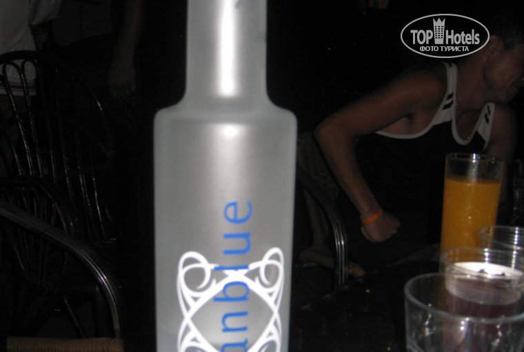 В баре напитки с 10 утра до 24 часов вечера. Пиво, водка, раки(турецкая водка), вино-белое(сухое), красное(сухое), джин, пепси, кола, фанта, чай, кофе разное, горячий шоколад. Виски с колой там нет. Любителям русской водки придется привозить из России свою, т.к.там не понравится. Мы нашли магазинчик, где продается водка, как русская по вкусу-стоит 25 лир(1лира=17руб.примерно). Фото ее выложила. У бара вечером много народу и мы один раз дали 1$, чтобы нам принес спиртное. Так на следующий день, мы не успели прийти и сесть этот же парень нам сразу принес целый поднос такого-же спиртного+еще поднос с джином...