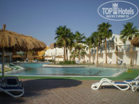Внутреннюю территорию хорошо убирают примерно после завтрака, так что во дворике до вечера чисто. Очень красивый бассейн с пальмовым островком по середине и голубой сильнохлорированной водой. Смотреть приятно, но купаться там я так и не решилась.