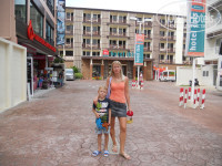 Завтраки в отеле однообразные, но я не придирчивая и меня вполне устраивала яичница, ветчина, фрукты и кофе. С сыном было сложнее: он привык на завтрак есть кашу или омлет, но тайцы, видимо, вообще не знают что такое молочная каша, омлет не совсем обычный, поэтому сын довольствовался хлопьями и гренками. Вечером заказывали пиццу - вполне вкусно и приемлимая цена (249 бат), одной пиццей можно наесться 2 взрослым. Остальное было дороговато и поэтому питались в кафешках недалеко от отеля, благо их в окресностях предостаточно. К тому же рядом с отелем есть 2 супермаркета.