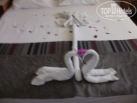 Ездили с семьей и друзьями.Приехали.Был свободен только один номер.Поселили обе семьи в него на три дня.Потом переселили в отдельные домики(бунгало).В бунгало хорошо.Две двухспальные кровати,тумбочки по бокам,большой вместительный шкаф,в шкафу сейф.На телевизоре показывали три русских канала(первый 1,россия1 и россия24)а остальные Турецкие.На улице стоят стулья и столик.Убирались каждый день.Если оставляли чаевые,то делали более красиво и посыпали лепестками каких-то цветов.