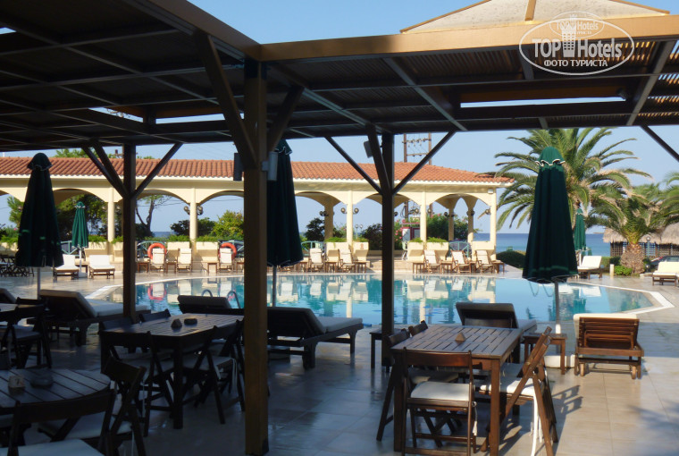 Территория отеля очень ухоженная, пляж чудесный, Есть небольшая детская площадка с качелями. Единственный недостаток это ОСЫ!!! их много и особенно доставляют дискомфорт когда кушаешь на улице.