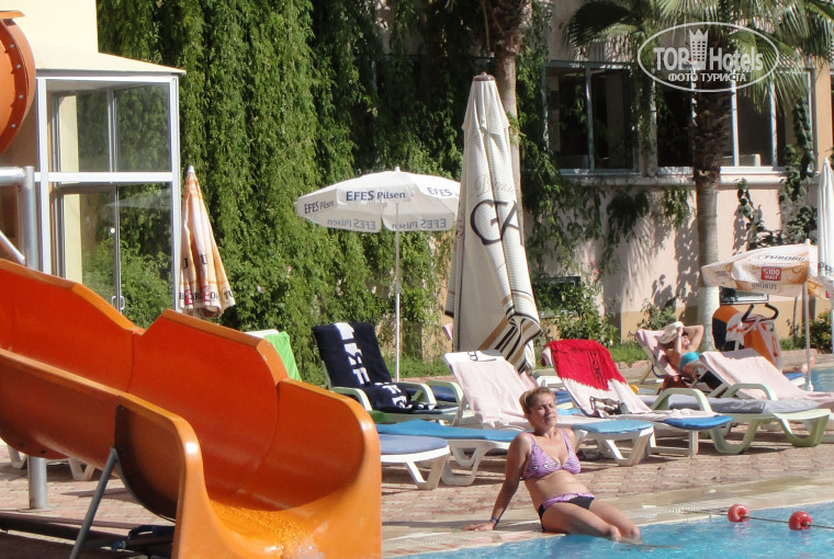 Расположение отеля очень удачное, рядом есть магазины и автобусная остановка (любители шопинга могут быстро добраться до Манавгата). Вечером можно прогуляться до античного Сиде и набережной там очень красиво (если не хотите идти пешком на автобусе 2 лиры, доедите за 5 минут). До пляжа возят на долмуше (отельный автобус), но и пешком дойти быстро и просто. Дорога к морю красивая много разных цветов, растений. Пляж великолепный, чистый, песочный просто красота. Море теплое, прозрачное.