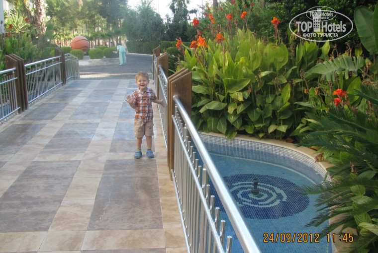 Приехали в отель около пяти утра, по правилам заселение в 14-00. Я усталая, с трехлетним ребенком на руках ... Приготовилась сдать чемодан в багажную комнату и дожидаться утра, но через пятнадцать минут мы были уже в номере. Окна номера выходили на канал, при открытом окне днем спокойно, вечером слышно как в соседнем отеле работают аниматоры, утром слышен призыв к молитве. Звукоизоляция окон хорошая, кондиционер работает, проблем с водой нет, детские каналы по телевизору на немецком языке, что совершенно не смущало моего сына. Проблем в обслуживании нет, нужно быть приветливым, и даже не владеющие языком люди тебя начинают понимать. БОльшая часть отдыхающих – немцы, много семейных с малыми ребятками. Аниматоры занимаются детьми и взрослыми, регулярно утраивают веселые мероприятия. С едой проблем не было, кормят с утра до вечера, все свежее, очень понравилось разнообразие десертов (так и не удалось все попробовать). Очередь была только за мороженым. Море спокойное, не глубокое, чистое. Пляж песчаный ухоженный. Турки очень приветливые и вежливые. Отель выбирали по принципу спокойного отдыха, где можно провести время с маленьким ребенком, без крикливой пьяной толпы.