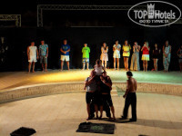 Заезжали в отель вечером,разместили быстро,за вид на море взяли 40$! Отель небольшой,территория очень ухоженная,чистая,посажены разнообразные цветы,деревья,кустарники,кактусы. Ландшафт холмистый,поэтому очень много подъемов и спусков по лесенкам. В принципе это придает большую красоту территории отеля и бодрость телу,особенно после сытных ужинов)) Ресторан вполне приличный, не успеешь доесть уже и тарелку унесут,один раз даже не начали есть десерт только отлучились за напитками,так от нашей тарелки с десертом и след простыл)) Еда вкусная,но за 10 дней уже начала надоедать. Утром всегда дают теплые круассаны,булочки из слоеного теста с разнообразными начинками и формами. При тебе готовят омлет, блины вот только они пресные почему то. На обед есть всегда тушеная рыбка без костей и она же есть на ужин плюс еще подают курицу и говядину. Каждую среду и пятницу проводятся тематические вечера:египетский ужин после которого в амфитеатре показывали 2 танца(с юбкой и живота) и романтический- в пятницу с последующим фаер шоу. В номере каждый день убирались,меняли полотенца,белье постельное раз в неделю. Банные принадлежности пополнялись как начинали заканчиваться,вот плохо тока что тапочки не выдавали. Через день из полотенец крутили разных зверьков,сердечки. Чаевые не оставляли. Дорога к пляжу занимала минут 5 под навесом из какой-то соломы, так что при обратном пути с пляжа разгоряченное тело поддувал небольшой ветерок с моря под тенью навеса. Пляж не большой но место всегда можно найти,впрочем как и везде,так как народу в отеле не много. Вообщем отель нам очень понравился,везде можно найти свои плюсы и минусы. Мы искали тихий, недорогой и уютный отель.