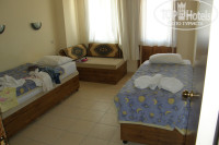 Летели из Киева. Полет занял 2 часа, без каких-либо неудобств. До отеля доехали минут за 50, с учетом того, что завозили туристов еще в два отеля. По приезду в отель (в 10.00 часов), нам сказали, что в номера поселят после 14.00 часов и при этом предложили заселить всех в один семейный номер. Мы отказались, пояснив, что подождем до 14.00 часов. После этого предложили позавтракать и провести время у бассейна. Никаких денег для хорошего заселения мы не давали. Переодеваться для бассейна мне и дочери пришлось в туалете в фойе отеля, а муж с братом переодевались в сауне. Сумки с вещами оставили в фойе. Также, пока ожидаем номера, нам предложили посетить хамам, но никакого желания идти в баню в тот момент не было. Ситуация с заселением была самой негативной из всего отдыха. Номер дали ближе к 16.00 часам. При этом дали на всех один семейный номер, пообещав расселить на завтра в два стандартных. На следующй день дали один стандартный номер в который переехал брат мужа, а мы на 8 дней остались в семейном номере. Номер состоял из двух комнат. В одной двуспальная кровать, холодильник, кондиционер. Во второй две кровати, минидиван и кухонный уголок, также имелся кондиционер. Номер был приемлимый, кондиционеры, фен, холодильник работали исправно. В телевизоре 2 русских канала. Во второй комнате имелся выход на балкон. Второй номер, куда переехали через 8 дней пребывания, был также хороший, одна 2-х спальная крвать и вторая полуторная. Также вся техника работала исправно. Но после первого было тесновато. Общее состояние номеров хорошее, убирались каждый день, но постельное белье не меняли, полотенца меняли 2 раза по настоянию:).