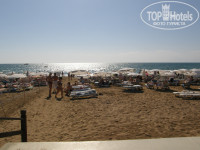 До пляжа из отеля далековато, муж с братом доходили минут за 8 бодрым шагом, я с дочерью не спеша за 20. Пляж песчаный, вход в море отличный, один песок, море чистое, дно полностью песчаное, глубже становится постепенно, только метров через 100 глубина где-то 180 см. Территория пляжа не большая. Лежаков хватало всегда. Бара на пляже нет (и хорошо:) ). Мини-бус ходил до пляжа каждый час, всего минуты 3 езды, поэтому когда собирался полный салон, то особого неудобства поездка не доставляла.