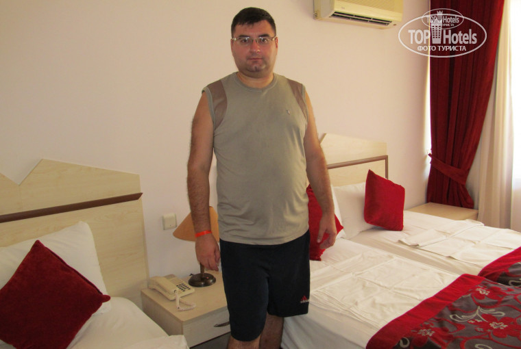 Доволен и счастлив, что побывал там. Солнце, морской воздух, средиземное море. Куча цветов, 4 бассейна. Питание великолепное, витаминное, всё включено. Есть рыба, мясо и куча разной зелени и помидор, огурцов, соусов. В номере удобные кровати с ортопедическими матрасами. Качество простыней приятно удивило. Очень качественная ткань. Меняют постель и полотенце через день. Не успеваешь испачкать. Выдают мыло и шампунь. Сантехника исправна, есть даже фен. В номере и телевизор с 2 русскими каналами, холодильник и кондиционер. Всё работает. Есть балкончик с вешалкой в стене, где сушить купальники, и 2 плетёных стула. Мне так нравилось вечерком смотреть на Луну и дышать морским воздухом на балкончике. На территории по вечерам чистят все уличные урны и моют лежанки для бассейнов. На пляже лежанки постоянно расставляют по порядку, каждый вечер, и моют их. Вечерами постоянно развлекают представлениями, для детей - мини диско. На рецепшене тоже все понимают по русски. Ещё много можно написать об отдыхе, об куче экскурсий, за отдельную плату. Плавании на яхте, купание в открытом море, экскурсия в Израиль, по святым местам в Иерусалим и Вифлеем, на Мёртвое море. В общем я побывал как в Раю, приехал весь загорелый, отдохнувший, и самое интересное, постройнел. Не смотря на то что питание "как на убой", много плавал в море. В отеле безопасно ходить и днём и ночью. Полиция смотрит за порядком, но это почти не заметно. В общем пьяных не было. Можно познакомиться с многими новыми людьми, особенно с иностранцами - немцами, итальянцами, турками. Я даже познакомился с двумя девчонками из Дании. Обменялись емайлами. Кстати интернет там тоже бесплатный хай - фай. Сам город Сиде - классный, можно выйти, погулять, сходить на развалины храма Апполона и Римского амфитеатра. В общем когда женюсь, поеду в свадебное путешествие в отель "Белла Сан" на Средиземное море, снова. Главное что в сентябре на улице +35, температура воды в море, как в ванной.