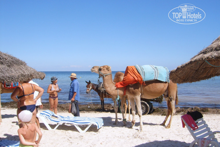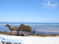 3.Пляж. Пляж песчаный, удобный пологий вход в море. Однако уборка и поддержание чистоты на пляже остаывляют желать лучшего. После шторма на берег выбросило горы водорослей и мусора, однако уборка растянулась на неделю. Рано утром можно было наблюдать как единственный служащий сталкивал весь этот мусор обратно в море, вот такая своеобразная уборочка.В последующие дни появилась лошадка с небольшой повозкой, а затем и просто работник со скрипучей тачкой. Понятно, что при такой механизации пляж долго был грязным. Очистили ближе к нашему отъезду. Лежаки и зонты бесплатные, но необходимо занимать пораньше.Территория пляжа большая, но по пляжу постоянно шествуют верблюды и лошади