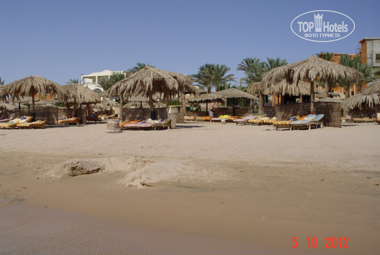 Пляж прекрасный, ради этого пляжа я готова еще раз в этот отель вернуться, хотя мы никогда не отдыхаем дважды в одном месте :) Протяженность - около 300 метров, песок и отличный вход в воду, особенно для деток - долго мелко. В правой части пляжа (если смотреть на море) находится "активная" зона, там работают аниматоры, играет музыка, ходят продавцы всяких удовольствий :) - косички, катание на лошадях, верблюдах, тату и т.п. Мы всегда располагались в левой части пляжа - во-первых, туда шла прямая дорожка от нашего корпуса, во-вторых, там была зона, свободная от продавцов, они туда никогда не заходили. И отдыхающих там было намного меньше. Лежаки мы не занимали, на пляж приходили около восьми утра после завтрака, места были всегда! Ни разу не было, чтоб мы пришли, и была проблема с размещением! Можно было и в девять придти и найти спокойно свободные лежаки, пусть и не в первом ряду. В правой части пляжа места занимали раньше, так что про занимание заранее лежаков в "активной" зоне сказать не могу.