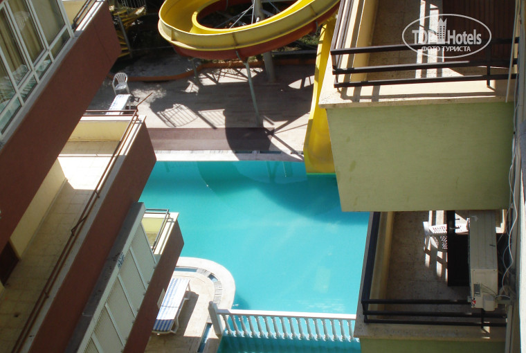 Путевку я брала в спешке, а отзывов об отеле было мало. Так я и оказалась в этом отеле. Уж на что я не люблю плохо отзываться о том месте, где отдыхаешь, и где работают хорошие люди, но этот отель действительно очень слаб. Советую ехать в том случае, если нет ничего получше. Общее впечатление - отель находится очень близко от центра Алании, до крепости минут 15-20 пешком, до моря - 5 минут. Вечерами приятно пройтись по набережной. Это плюсы, но есть и минусы - прямо возле входа в отель стоят 2 мусорных бака, которые сразу портят первое впечатление. Зато слева от входа в отель есть очень приятный минипарк, с романтичной скамьей, увитой цветами)) Территория отеля очень маленькая, есть горка, бассейн, wi-fi. Если вас поселят в номера с видом во внутренний двор, вы будете видеть с балкона не очень приятную картину, как на фото. Если поедете в сентябре, будьте готовы к детским визгам, сигналам перемен, и удивленным детям, смотрящим на кушающих туристов через забор))) Да, я такое вижу первый раз, но отель соседствует со школой. Для сведения - отель Verda и holiday принадлежат одному хозяину, находятся рядом, VERDA поновее, но! там нет столовой, питаться приходят в отель Holiday. Так что лучше выбрать этот. Питание в отеле по принципу "кто успел, тот и съел")) приходите в течении первых полчаса, позже останутся холодные остатки. А может и не останутся) Питание скудное, никаких сладостей, банка нескафе, арбуз, дыня, даже маслины, которых обычно в турции полно - не каждый день. Но зато в этом отеле есть такие хорошие люди как Гуля на рецепшене, веселый дядя повар с женой Мелек и др. И в заключение хочу сказать, что нужно всегда стараться жить позитивно. Сладости к обеду я накупила в магазинах, кушать иногда ходила в кафешки. которых там полно, каждый день пила соки-фреш, ездила на экскурсии и просто кайфовала, чего и вам желаю!