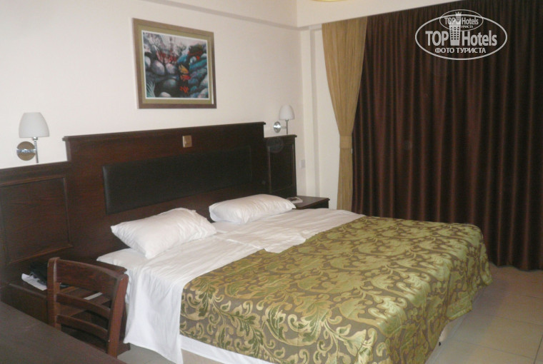 Отель нам понравился сразу, все улыбаются и очень приветливы. Номер у нас был с гостиной со встроенной кухней и спальней. Как только мы туда зашли на полу я увидела маленького муравья, в ту же секунду зашла горничная и чем то побрызгала, все две недели я больше ни одного не встречала. Убирались каждый день и очень хорошо, пол чистый, ванная комната блестит, полотенца чистые (правда видно что тысячу раз перестираны), фен в ванной а я зачем то тащила его с собой, на кроватях как будто каждый день новые простыни. В номере чайник, тостер, посуда, и не маленький холодильник. В каждой комнате по телевизору на стене, ловит где то четыре русских канала, включили один раз, пульт на два телека один. WI-fi в номере бесплатный, пароль брали на ресепшн. Есть только две вещи в номере которые мне не понравились, кто то наверное улыбнется: ужасные подушки, люблю потоньше и не такие пружинистые. И второе, днем шума не слышно...а ночью гул, муж сказал что это скорее всего магистральное кондиционирование, видимо если у кого то в корпусе он включен слышно у всех. Я очень не люблю посторонние шумы, но к этому привыкла сразу и как то больше его не воспринимала. Номеру тем не менее ставлю большую 5! На ресепшене все говорят по русски и вообще 90% процентов кого я встречала в отеле русские. Девушки на ресепшн всегда ответят на все вопросы и помогут. Большое им спасибо!
