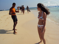 Пляж. Пляж красивый, ухоженный. Песок не белый, конечно, но приятный. Кораллов на пляже нет. Обувь специальная не нужна. Водичка еще теплая, вылезаешь, холодно. Ветра что-то начались, после моря замерзаешь немного. Все старались занимать шезлонги, приходишь, полотенца уже лежат, а народу нет. Мы лежали на песке на полотенцах (если полотенце хотите поменять – киньте в ванной на пол). Все-таки на земле лежать для меня приятней. Энергия земли и все такое . Наши мамаши с детьми, кстати самые громкие на пляже.