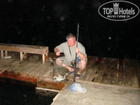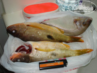А самое привлекательное на пляже для нас оказался пирс. Я никогда в жизни не ловила рыбу. Супруг изначально удочку взял. И вот, посмотрев на его успехи, а также на отдыхающих женщин, ловивших рыбу целыми днями, я сказала, что тоже хочу удочку. Не вздумайте покупать удочку в отеле – дороговато. Выйдете из отеля, поверните налево, две минуты ходьбы – небольшой магазинчик. Телескопическую удочку длиной 2.7 м с катушкой, леской, грузилами (да еще и продавец прицепил все) мы купили за 700 рублей в переводе на наши деньги. Далее (да простят меня рыбаки) последует непрофессиональное описание. Рыбалка очень простая, так как ловится донная рыба, поплавки не требуются. Глубина около отельного пирса – 3-4 метра. Разматываешь катушку до падения грузила на дно и ждешь. Ловить лучше всего на креветку, которую можно купить в местном супермаркете. А также неплохо клюет на ракушку – дожидаетесь максимального отлива, собираете вытянутые ракушки, кирпичем разбиваете, а мягкую внутренность насаживаете. В мою самую первую рабалку я за час поймала 6 рыбин. А самое приятное, что рыба безумно вкусная. Ее можно отдать на кухню и за 20 дерхам (170 руб) за киллограмм Вам ее приготовят. Хотите приготовить сами – в любое время дня и ночи разрешено прямо на пляже, на мангале готовить все, что Вам заблагорассудится. Рыбалка там не только донная. При нас мальчик, ведя по течению пластмассовую искусственную рыбку, поймал барракуду ( обалденная рыба с большими зубами), весом 2 кг. Но это уже рыболовное искусство. Пирс пользуется популярностью у местных.