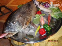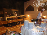 Завтраки, обеды и ужины - шведский стол.Всё проходит в единственном ресторане. Ресторан большой, места всегда есть. Мы приходили поздно, все подносы всегда полные.Питание разнообразное и в избытке.Из фруктов были дыни, яблоки, гуава, бананы, апельсины.Я думаю ассортимент приличный.Вторых блюд ассортимент огромный. Делают на заказ пасту с разными добавками, при тебе. Всё приготовлено очень вкусно. Отравлений ни разу не было.По четвергам проводили ужин при свечах. В этот же вечер кухня вся гриль.Была рыба, говядина, баранина, крабики. На завтрак кофе, чай, всё пакетики.Соки юпи) На обед вино красное, белое, пиво, все бесплатно.Если вы дружны с официантом, он вам принесет напитки сам.Запоминают, что кто пьёт. Если нет, то топаете сами. В лобби- баре на полдник выносят мини-пиццу и выпечку.Там же кофе с кофе машины. Тоже бесплатно.Бар работает с 11:00 до 23:00. Крепкий алкоголь весь местный, на вкус все, как будто из одной бутылки. Мы пили своё))).Кола, фанта,спрайт по одному стаканчику в руки.Подходы не ограничены. Ещё есть бар на пляже, но там только соки и работает он до 17:00.