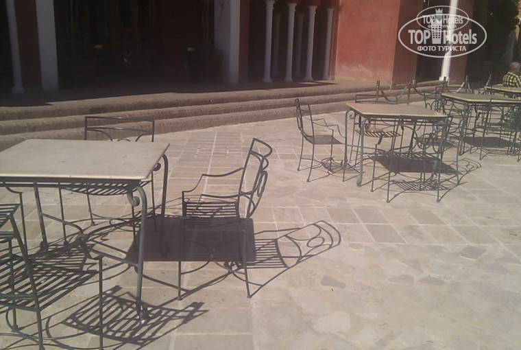 Вечные напряги всегда и везде. Тебя просто окружает мрак, старость и рухлядь. Прикладываю для примера фотографию обеденных столов одного из ресторанчиков. Не думайте что я выбрал уж самое унылое место, почти весь отель именно так и выглядит! Мрамор везде старый и нагнетает унылость, окраска подвыцвела, везде мрак. Плитка в номере да и вообще везде сильно заюзанная. Мне неприятно по ней ходить голыми ногами. Барные стойки затёртые, посуда заюзана и иногда даже грязная. Обивка всей мягкой мебели ужасно ужасно старая хуже чем у моей бабушки. Вообще у меня было ощущение что я нахожусь в каком-то совковом санатории. Плитка бассейнов пожелтела от старости, лежакам лет 30 уже на вид.