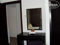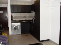 Инфраструктура номера отличная - гостиная-кухня прямо, налево по коридору туалет с ванной, рядом спальня. На кухне имеется стиральная машина, чайник, холодильник, тостер, чашки, кружки, поварежки, кастрюли и прочая кухонная утварь. Моющих чистящих средств нет, но в магазине это все продается по ценам ниже наших, еще себе домой привезете. В гостиной телевизор, диван, два стола, стулья. В комнате также имеется телевизор, сушилка для белья, утюг, гладильная лоска. Фен и переходник взяли на ресепшене. Вся мебель новая в хорошем состоянии. У друзей номер был, там так вообще два помещения с ванной и туалетом. Бассейн небольшой совсем на крыше, мы его не посещали, тренажерный зал рядом.
