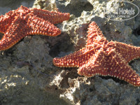 Пляж широкий, места много, лежаков хватает, песочек белый, мелкий, вода прозрачная-вообще красота! если смотреть на океан, то слева начинается дикий пляж, примерно в 500-700 метрах если пройти по берегу обнаружите мертвые кораллы среди которых есть и крабики и большие моллюски и морские ежи, а если присмотритесь в воде увидите морских звезд, зайдя в воду по колено можете их достать и делать с ними все что захотите, лично мы по фотографировались сами и показали американцам рядом прогуливающимся. А если пойти направо через пляж соседнего отеля , потом через территорию деревушки(расстояние примерно так же 500-700 метров) то придете к дельфинам где сможете сами за 35 долларов с человека поплавать с ними и покормить. К акулам не ходили. Везде по пляжу предлагают свежие кокосы, просят 2 доллара , но легко расстаются с ними за 1 доллар! Каяки и катамараны бесплатные находятся справа по пляжу.