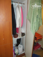 Есть шкаф, двустворчатый, но не пытайтесь открыть левую створку, она заколочена, зачем - не понятно.
