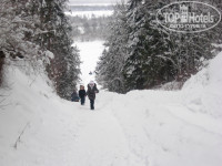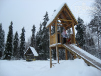 На территории очень красиво: много деревьев: ели, сосны березы. Чистейший воздух и снег. Имеется развлечения в русском стиле. Клуб, огромная снежная горка, несколько деревянных, мини-музей "Русская изба", где угощают вкуснейшими пирогами и кашей из русской печи. Нам организовали катание на лошадях, мотосанях, народные гулянья у костра, спектакли для детей, мастер-класс "Рождественский ангел. Для тех, кто приезжает лечиться есть соляная пещера. На территории есть магазин. В продуктовом есть все необходимое ( можно в еачестве сувениров купить бальзам на травах и масло в сувенирных горшочках (не вологодское, но ничуть не хуже)). В соседний, промтоварный можно даже не заходить.
