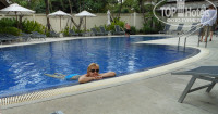 В отель прибыли после 14-00, поэтому не ждали заселения. Заполнили все, что надо за 5 мин., оставили депозит 100 долларов на двоих, получили квитанцию (в ней указан номер банкноты, сохраняйте), персонал сделал при нас ксерокс с паспортов, вручили нам 2 электрон. ключа от номера, и все… Мы присели на диванчик и стали ждать… Через 5 минут стало понятно, что к нам никто не подойдет. Я пошла к стойке и жестами спросила, мол, что, самим идти в номер? Мне радостно дали понять, что да. Ну и ладно, подхватили мы вещи и пошли к лифту. Номер 445, 4-й этаж, с видом на площадку перед отелем (что, кстати, хорошо, нам больше понравилось, чем если бы на внутренний дворик). Сидишь на балкончике, попиваешь кофеек, куришь, заодно наблюдаешь за движухой внизу. Заходили в гости в номер, выходящий на бассейн, так как-то не очень – выходишь на балкон покурить, а те, кто лежат у басика, начинают дружно на тебя пялиться, скучно им, что-ли? :) Даже как-то курить некомфортно было, а в нашем номере – полное впечатление приватности.