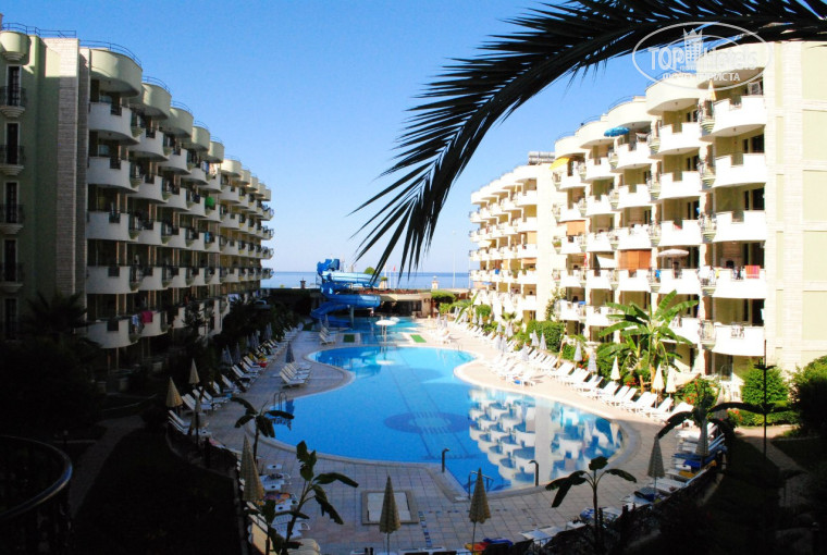 Территория гостиницы маленькая, зато огромный бассейн, и много неугомонных детишек)) Ночью бассейн закрыт, а жаль)