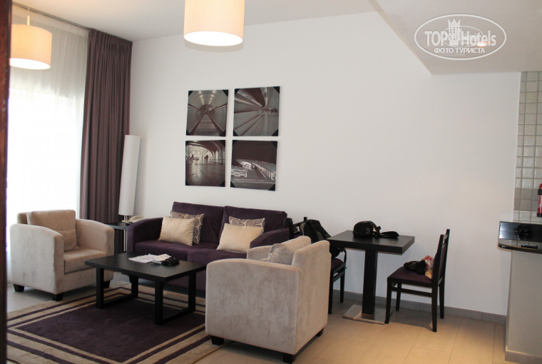 Трещала решетка кондиционера, но мы отказались в его услугах, открыв окно. Шум стройки не мешал. Температура при этом выше 25 градусов не поднималась. Вот только заметил, что в общей комнате (зале) у нас почему-то не было ковра, как на фото других туристов. Удивился тому факту, что сковородки были как новенькие, без царапин - никто не готовит кушать? Еще один раз удивился ночью, проснувшись от сирены пожарного извещателя. Причем заглушить его получилось только сняв голову. Отмечу пожалуй, что в номере нормальная влажность и вещи отлично высыхают за ночь. Еще один момент. Горячая вода несколько дней была чуть теплее парного молока.