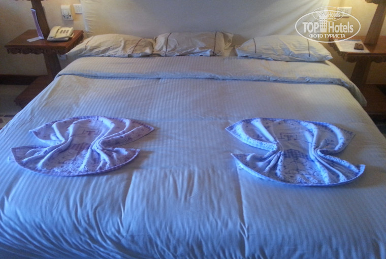 Мы брали номер категории Deluxe с видом на бассейн. Номер шикарный - огромная кровать с балдахином, приглушенный свет и даже растение в кадке (только в конце поняли, что оно искусственное). Обслуживания номера тоже превосходное, мы всегда оставляли на чай от 5 до 20 LE, и наш блюститель чистоты очень трепетно к нам относился. В номере на редкость нормально работающий фен, свой даже не доставала. В общем, номер на 5+!
