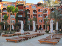 Отель шикарен. Мы с мужем вглядывались в остальные - более-менее симпатичными нам показались только Альбатросы. Но равного этому не было ни одного! Он настолько экзотичен в своей традиционной арабской архитектуре, что каждый, кто только читал сказки "1000 и 1 ночи" и играл в "Принца Персии", будет в полном восторге. Территория вылизана, все чистое и красивое. Некоторые фасады слегка потрепаны, но это лишь добавляет им обаяния.