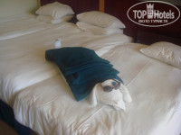 Номер новый, современный - особенно порадовал ЖК- телевизор с большим набором каналов (4 русских), чайный уголок с электрическим чайником и чаем-кофе-сливками (ежедневно пополняемыми), мини-бар с безалкогольными напитками. Фруктовая корзина, халаты-тапочки также прилагались. Уборка у нас была на 5+, возможно потому, что мы всегда оставляли чаевые.