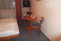 Впечатление отель оставил весьма положительное. В Праге есть с чем сравнивать – свою категорию в 3*** он оправдывает. Номера просторные, чистые, с небольшой прихожей, где размещается большой, вместительный встроенный шкаф. Мебель не новая, но своё предназначение выполняет на все 100% , спальные принадлежности нареканий тоже не вызвали, всё близкое к идеальному состоянию, за исключением может подушек – они показались немного жидковатыми. В номере на полу ковролин, из мебели кроме кроватей и прикроватных тумбочек, ещё были небольшой круглый столик , при нём два стула, ещё один столик около большого зеркала. Из техники – ТВ и телефон. Санузел вместительный с душевой кабиной. Окна номера выходили не на улицу , а во внутренний двор – было тихо.