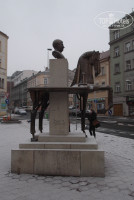 При отеле имеется ещё летний сад, где видимо, летом стоят столики, где можно посидеть и скоротать время. Перед центральным входом в отель находится небольшая площадь, где находится памятник чешскому писателю-сатирику Я. Гашеку , автору романа «Похождения бравого солдата Швейка».