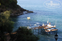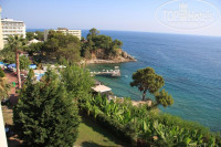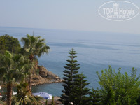 Виды и пейзажи. Мы вообщем-то и выбрали этот отель за красоту пейзажей. Насколько я поняла в нем ВСЕ балконы смотрят на море (ну на первом этаже просто море загораживает растительность и…люди). Отель находится как бы вершине склона небольшой скалы. Непосредственно с территории отеля можно было спуститься на пирс. На нем лежаки. Спуск в море сразу на глубину от 2 до 6 метров. На дне огромные булыжники, но это глубоко и плавать они не мешают. Море шикарное, для кого-то даже слишком теплое, наверно, (около 28 градусов), в хорошую погоду плавала в маске, не Красное море, конечно, но тоже и рыбки, и раки отшельники. Чтобы попасть на второй (песочный) пляж, нужно выйти из отеля и вдоль трассы идти минут 6. Там у отеля собственная часть на городском пляже. Есть душ, бар с гамбургерами, газировкой и пивом (бесплатно). Только работал он часов с 11 до 17. То есть тогда, когда нереальное пекло и все нормальны люди в номере или в отеле в холодке. Спуск в море замечательный - не очень резкий, не очень затянутый, песок. И детям и взрослым в самый раз. Вообще на территории отеля (не маленькой и не большой) много красивой растительности. Сосны, пальмы, гибискус и много цветущих красивых кустарников. Все подметается, убирается, поддерживается в чистоте. 3 бассейна, маленькие конечно, но когда такое море, бассейны больше для красоты. Вода несильно хлорированная, кожа не сохла, тем более все время мажешься кремами от загара, а они увлажняют.