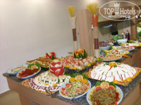 гамбургеры можно самому сделать- они там котлетки жарят, булочки какие-то.картошка фри, лепешки ,огурчики помидорчики, оливки маслины,ну ессественно водка рекой, пиво, джин,раки,спрайт кола фанта, местное юпи- это все бесплатно. Фреш, текилла, вискарь-платно