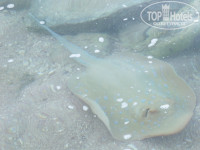 Очень много рыбок, такие яркие, плавали вокруг нас. Видели и ужасных мурен, и морских ежей, а в один день на берег выплыл огромный скат, да так и остался на камнях. Очень долгое время как будто позировал всем.