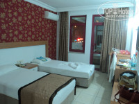 Отель расположен на центральной улице-бульваре Ататюрка. Если окна на этот бульвар , то воздух оставляет желать лучшего. Плюс отеля - недавно сделанный ремонт. Территории нет- отель, ресторан с бассейном и все - обычный городской отель. К пляжу Клеопатры - пешком минут 15 (вправо от выхода из отеля, столько же идти до порта в другую сторону).Лежаки платные -5 долларов в день. Номер хороший, после ремонта.