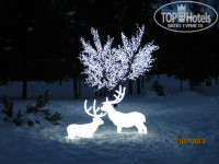 На территории есть боулиг, два катка, можно покататься на лыжах, сауна с бассейном в турецком домике, небольшой бассейн и хамам в отдельном корпусе. В сауне и боулинге был, отлично :-)