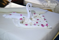Впечатления об отеле исключительно положительные! Разместили в хорошем номере-большой, светлый, чистый, все работало и ничего не отваливалось. Уборка хорошая, очень приятно было обнаружить в номере замечательного лебедя из полотенец, усыпанного цветочками :) Персонал приветливый и вежливый, никто не грубил не хамил и денег не требовал ни за какие "доп.услуги". Впечатление портил только так называемый "Тагил", который, впрочем, пасется везде и всегда, в любом отеле, на любых курортах. В первый же час нашего размещения в номере (время -12.30), в коридоре раздался громкий пьяный вопль особи мужского пола : "А вот мы ЩА проверим, живет тут кто или нет!!!!!!!!!!" и через секунду дверь нашего номера содрогнулась от удара, явно нижней конечностью названного выше существа. Когда мы тут же выскочили, возмущенные, из номера, существо в розовой майке и трусах уже убегало прочь по коридору, трусливо приседая и повизгивая. На наши просьбы объяснить произошедшее существо никак не откликнулось и еще быстрее припустило по коридору,из чего можно сделать вывод, что данный "Хомо Эректус" (Человек прямоходящий) еще не обладает навыками человеческой речи. В дальнейшем друг существа (он же - наш сосед по номеру в отеле) извинился за него и больше ничего подобного мы не слышали. Еда была хорошая, всегда всего было в избытке. Алкоголь нас не интересует, пили много чая в ресторане отеля, около бассейна-лимонад...чай понравился ;) Неизгладимое впечатление оставили говядина с рисом и жаренные цукини :) Прекрасные десерты - огромный выбор, мы налегали на чизкейки и всякие пирожные типа "картошка". Много тортов, и остальной выпечки. До моря недалеко, можно пойти пешком мимо живописных видов и цветущих садов отеля Golden Five City, а можно на автобусе, который каждые полчаса, а то и чаще отъезжает от места между Топазом и Сапфиром. Конечно, досаждали вопли других наших соседей с разных уголков отеля, но без этого, как уже говорилось , никуда, к сожалению. Более чем доступные по цене курорты, с питанием "Все включено", выпивкой и т.д. всегда будут привлекать всех и вся. Но все равно, каждый раз, как в первый, печально созерцать особей (особенно женского пола), поддатых и не привлекательно выглядящих, распИвающих пиво и алкогольные коктейли в огромных количествах и распЕвающих песни на весь отель (типа носа носа рота рота и бара бара бере и пр. нечленораздельности).
