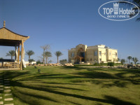 Территория просторная, идеально чистая и ухоженная (безукоризненная чистота там везде, кроме разве что номеров - в корпусах, на пунктах питания, в туалетах), лужайки а-ля «гольф-поле» и деревца аккуратно подстрижены, кусты цветут, пальм колоссальное количество, но мне ландшафтный дизайн в сравнении с настоящим ботаническим садом того же Шератона показался скучновато-плосковатым, а степень озеленения - недостаточной, даже в маленьких отельчиках Сафаги растительность более пышная и разнообразная. Присутствовало впечатление какого-то голого пространства. Также на территории масса искусственных водоемов с островками и мостиками, про них много написано в отзывах другими людьми, нет смысла повторяться, своя большая пристань, откуда ходят морские экскурсии, станция винд-серферов и конюшня. Нулевым этажом основного здания с аляпистыми лубочными картинками, надерганными из всех времен и народов, вензелями и золоченой лестницей, никак не сочетающимися между собой, уже целая толпа народу неумеренно восхищалась до меня, его я тоже описывать не буду.