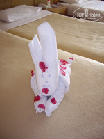 Итак, разместили нас в номер без вида на море за шоколадку недалеко от ресторана и бассейна-очень удобно. За вид на море платить не захотели. Номер просторный, на 1 этаже. Каждый день убирались и за 5 фунтов делали красоту из полотенец_ Уборщик спрашивал, в какой время лучше прибраться. Около номера стоит кулер, но он работал пару дней, затем мы ходили к другому кулеру, чуть дальше.